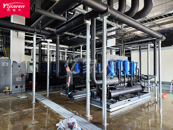 浙江某光伏厂引入亿家人水源热泵系统后,制备每吨85℃纯水仅耗电18度,较电加热节省71%能耗;按日需150吨计算,单日电费降至 1600 元,年节省电费超120万元。且系统核心部件寿命达8-10年,维护频率仅为电加热的1/5,进一步减少运维成本,投资回收期可压缩至1年左右。